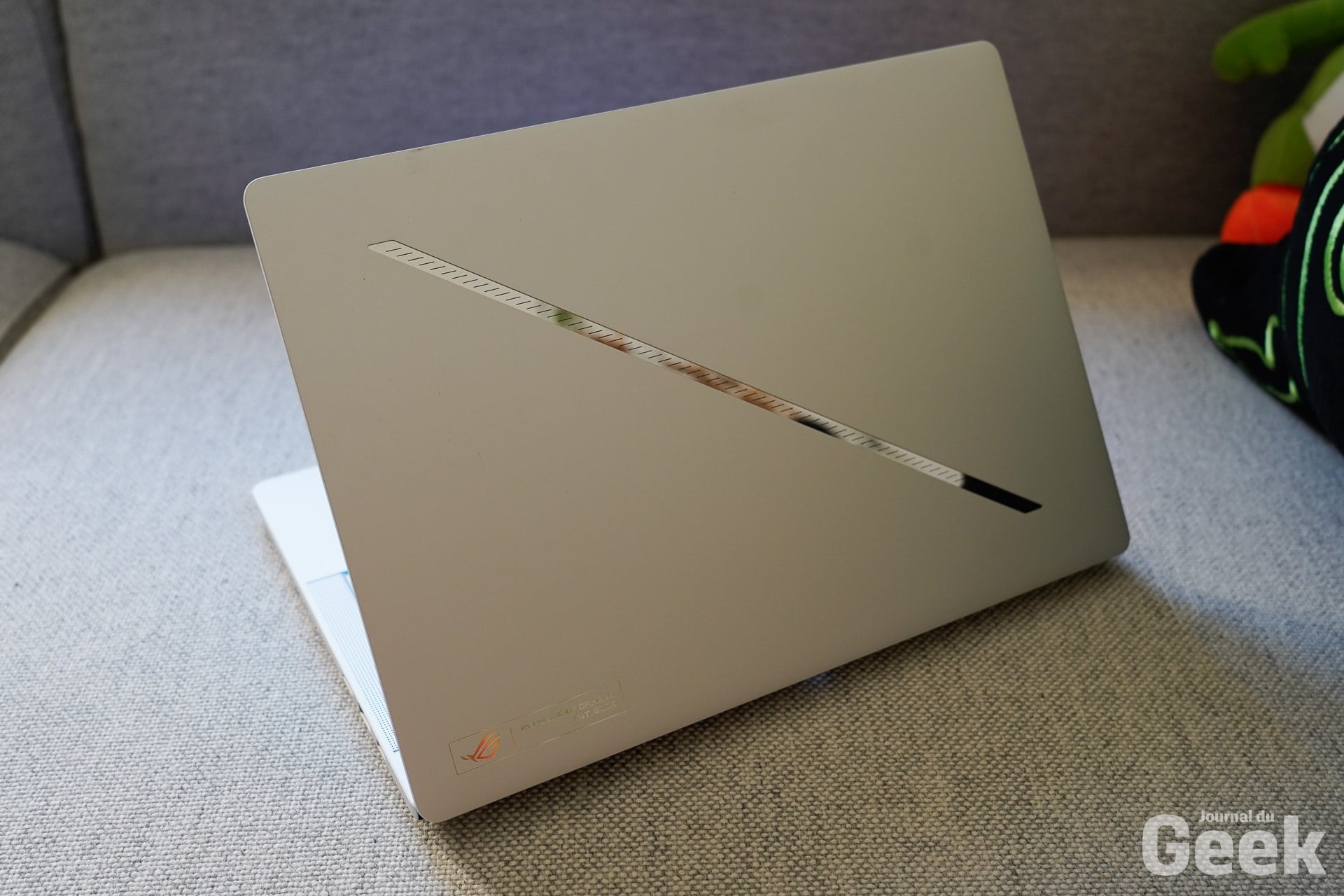Côté batterie, Asus promet une autonomie de 10 heures en utilisation bureautique. On n’a pas fait de mesures scientifiques, mais on l’a énormément utilisé en lieu et place d’un MacBook Air en temps normal et on n’est jamais vraiment tomber en rade avant la fin de la journée. Alors oui, avec les jeux, c’est totalement différent et tout dépendra des jeux qu’on lance. Aussi, si on joue à Doom d’un côté, l’autonomie sera différente de celle en jouant à un jeu indé comme The Binding of Isaac par exemple. Si on devait donner un chiffre tout de même, pour un gamer, on comptera environ 4 heures. Le ROG Zephyrus G14 est le type de machine avec laquelle on peut partir en déplacement sans se soucier de l’autonomie, tant qu’on n’est pas en train de jouer. Polyvalence, c’est le mot d’ordre et on trouve ça impressionnant pour une machine de cette puissance.