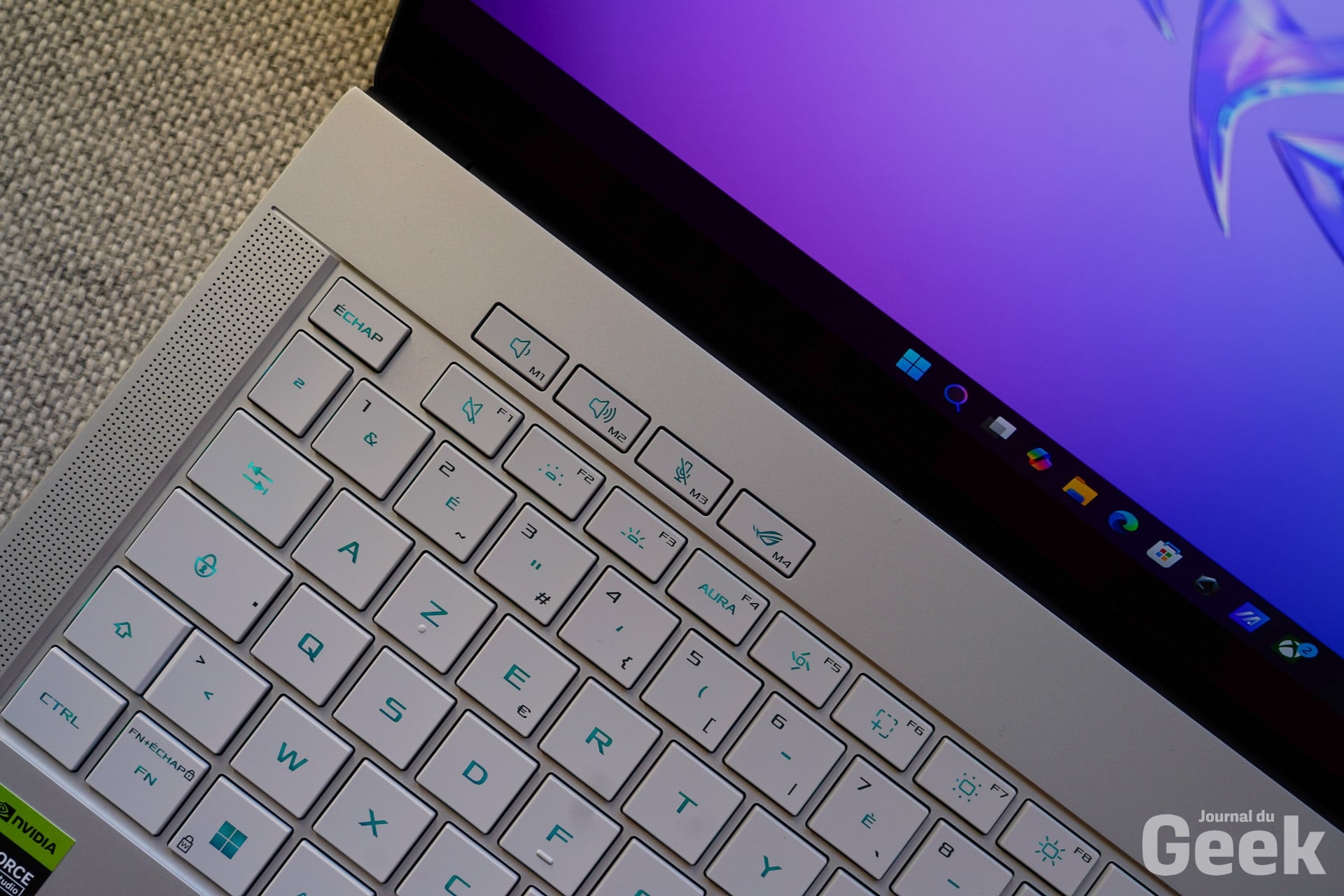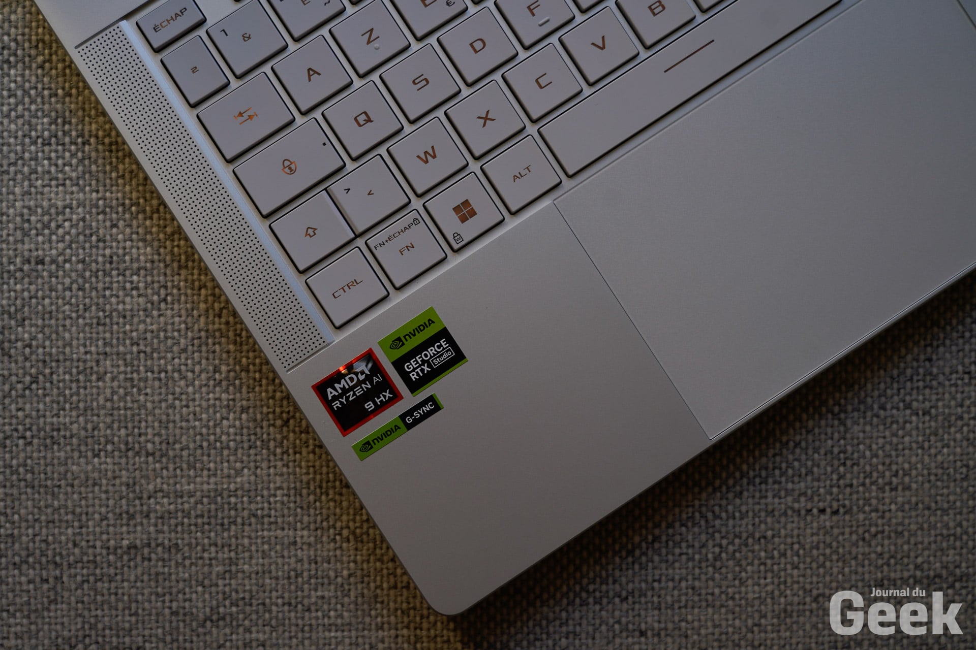 Et donc, pour ce qui est de l’audio enfin, on retrouve un système de 6 haut-parleurs. Le son est très bon et il ne sature pas à fort volume. L’audio a été amélioré de manière significative par rapport aux modèles précédents, offrant une bonne immersion pour les jeux et le multimédia. On s’est surpris à plusieurs reprises à utiliser le Zephyrus G14 sans écouteurs ou autres et on a bien profité de nos contenus multimédias ou de nos jeux.